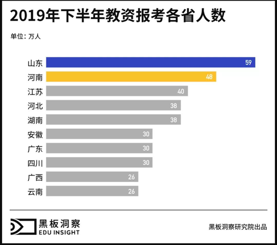 师资缺乏的同时,黑板洞察也注意到了一个现象,今年下半年教师资格证笔试报名火爆,报考当天,官网、学信网一度“瘫痪”,报考人数达到900多万,仅次于高考。教师资格证报考人数的增多是否能带动教师培训市场的火热,师资供给要迎来春天了吗?