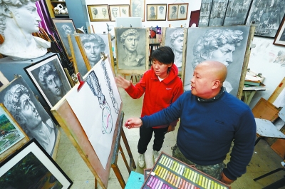 北京教育学院美术系副主任杨岩是北京粉画研究会副会长,多年来从事北京市中小学粉笔画教学和推广工作,尤其在粉画走进北京市中小学校园的工作中取得了丰硕成果。他介绍说,“目前我们主要做的是在北京市中小学开展‘四区五校’粉画课题研究。开展这项工作的目的是提高教师自身基本功能力。提倡上‘素课’,减少对PPT等课件的依赖,鼓励老师能用教具不用课件。粉笔本身就是教师上课的一个必备工具,用粉笔简笔画的形式,简单易学。让使用粉笔成为教师必备的一种修养,让教师用简笔画来表述事情,和同学一起用粉笔绘知识、绘成长、绘生活,让教师成为一个有趣的讲述者。”