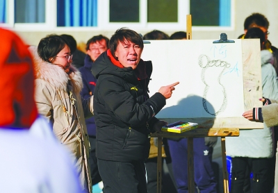 东城区小学体育老师肖晶引入粉笔画来突破体育课教学难点